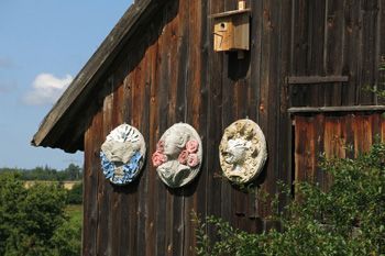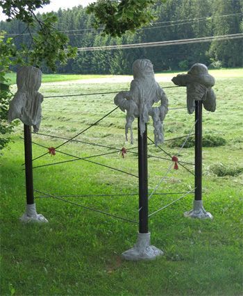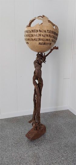 Beziehungsgeflecht Installation mit 3 Skulpturen Beton, Holz, Eisen